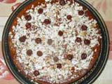 Ингредиенты: 100 г сливочного масла или маргарина 100 г сахара 60 г муки 40 г крахмала 1/2 ч. л. молотой корицы 2 полные ч. л. разрыхлителя 4 яйца 75 г мелко натертого черного шоколада 25 г порошка какао 75 г мологого миндаля для начинки: 400 г вишни без косточек (консервированной) 500 г сливок 1 пакетик ванильного сахара для украшения: 60 г шоколадной стружки Инструкции: Масло или маргарин взбить с сахаром до получения густого пышного крема. Смешать муку с крахмалом, корицей и разрыхлителем. Вместе с яйцами ввести в сливочный крем. Порциями добавить черный шоколад, порошок какао и миндаль. Предварительно нагреть духовку до 180 градусов. Форму смазать тонким слоем масла и посыпать мукой. Наполнить тестом и разровнять его. Выпекать в духовке около 35 минут. Опрокинуть бисквит из формы на решетку для пирога и полностью охладить его. Остывший бисквит разрезать горизонтально на 3 коржа. Аккуратно слить с вишни сироп. Сливки с ванильным сахаром тщательно взбить в густую пену.Тонким слоем нанести 1/3 сливок на нижний корж. Сверху аккуратно выложить половину вишни. Накрыть вторым бисквитом, аккуратно намазать тонким слоем сливок. От оставшейся вишни отложить 12 ягод, а остальные выложить поверх сливок. Накрыть третьим коржом. 3 ст. ложки сливок положить в кондитерский мешочек с звездчатым наконечником. Обмазать торт оставшимися сливками. Украсить середину торта розочками из сливок, расположив их по кругу, внутрь которого положить отложенные вишни. В заключение посыпать край шоколадной стружкой.