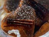 Выпечки: Печенье"Печенье ""гусиные лапки" | Состав: 2 стакана акары (соевый творог), 0,5 стакана теплой воды, 0,5 стакана растительного масла без запаха, 2,5 стакана муки, соль по вкусу. Замесить тесто. Разделить его на 2 части, раскатать 2 колбаски и нарезать их вдоль на кружочки толщиной 1-2 см. Каждый кружочек размять и посыпать сахаром, свернуть вдвое и опять посыпать сахаром. Затем свернуть вчетверо, кончиком ножа с одной стороны сделать три небольших вмятины, посыпать сверху сахаром и положить на протвень, намазанный маслом. Выпекать в духовке |