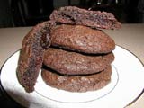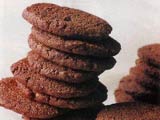 Шоколадное печенье 3 | Ингредиенты: На 25 печений: 140 гр простой муки 50 гр какао-порошка 1/4 ст л бикарбоната соды 1/4 ст л соли 50 гр плюс 1 ст л коричневого сахара дополнительно 50 гр плюс 1 ст л белого сахара 50 гр несоленого сливочного масла 50 гр маргарина 1 ст л ванильного экстракта 1 яичный белок Инструкции: 1. Соединить муку, какао порошок, соды, соль и перемешать. Добавить сахар, разминая комки руками. 2. Взбить масло и маргарин электрическим миксером или деревянной ложкой. Добавить в муку и сахар, добавить ваниль и белок, замесить тесто и сформировать из него полено длинной 25 см. Завернуть в пленку и положить в холодильник на 45 мин. 3. Разогреть духовку до 180 гр С/Gas 4. Проложить 2 противня бумагой для выпечки или фольгой. Нарезать тесто на кружочки длинной 5 мм. Разложить на противнях на расстоянии 2.5 см. Запекать 14 мин. Если необходимо, через 7 мин поменять противни местами, или запекать печенье на нижней полке немного дольше. Переложить на решетку и дать остыть.