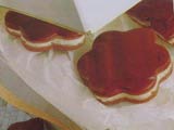 Берлинское печенье с маракуйей | Вам потребуются: готовое слоеное тесто (бездрожжевое) - 500г; для глазури: сахарная пудра - 3/4 стакана; сливочное масло - 20г; маракуйя - 1 шт. Раскатать тесто на слегка посыпанной мукой поверхности в прямоугольный пласт размером 35х30 см. Посыпать сахаром, сложить длинные (35 см) края так, чтобы они соединились в центре. Затем сложить вдвое получившийся прямоугольник. Острым ножом нарезать на ломтики толщиной 1 см. Положить отрезанные ломтики срезом вверх на подготовленный противень. Немного развернуть ломтики, прижать ладонью, чтобы получились сердечки. Чуть-чуть смочить водой. Выпекать в умеренно нагретой духовке около 15 минут до слегка золотистого цвета. Готовые печенья оставить остывать. Для глазури в миске смешать сахарную пудру, добавить растопленное сливочное масло и мякоть маракуйи. Хорошо перемешать.Готовую глазурь намазать на печенье и оставить на несколько минут, чтобы глазурь немного подсохла. |