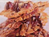Ингредиенты: На 18-20 шт: 40 гр порезанных цукатов 40 гр засахаренных вишен 40 гр миндаля, порезанного хлопьями 75 гр простого шоколада, растопленного 50 гр сливочного масла 50 гр сахара 2 ч л светлой патоки 50 гр простой муки Инструкции: 1. Разогреть духовку до 180 гр С. Растопить масло, сахар и патоку в кастрюле с толстым дном. Снять с огня и добавить муку, цуктаты, вишни и миндаль. Перемешать. 2. Ложкой выкладывать тесто на противень, проложенный пергаментом, оставляя место между ними. Разровнять ложкой. Запекать 8-10 мин до золотистого цвета. Достать из духовки и оставить на противне 2 мин. Затем охладить на решетке. 3. Тем временем растопить шоколад на водяной бане. когда печенье остынет, побрызгать сверху шоколадом. Дать затвердеть.