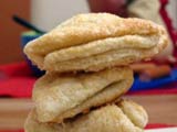 Творожное печенье | Ингредиенты: На 25 шт : 250 г творога 100 г размягченного маргарина или сливочного масла 200-250 г блинной муки или обычной с разрыхлителем Инструкции: 1. Смешать масло с творогом, затем постепенно всыпать муку, постоянно вымешивая. 2. Раскатать тесто тонко и вырезать стаканом кружки. 3. Одну сторону лепешки обмакнуть в сахарный песок, свернуть пополам сахаром внутрь. Затем опять одну сторону окунуть в сахар, снова свернуть пополам сахаром внутрь, снова обмакнуть в сахар. 4. Выпекать при 200 гр С 15-20 минут до румяного цвета.