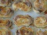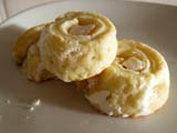 Печенье Розочки | STRONG>Ингредиенты: Тесто: 200 гр маргарина, 200 гр творога, 1.5 ст муки, соль, сода, уксус Начинка: 1 ст сахара, 3 яичных белка, ванилин, 1 ст порубленных орехов. Инструкции: 1. Для теста все компоненты смешать, разделить на 4 части, скатать шарики и поставить на холод на 2-3 часа. 2. Взбить белки с сахаром в крутую пену (чтобы белки хорошо взбивались, яйца надо заранее вытащить из холодильника, чтобы они не были холодными). Смешать с рубленными орехами. 3. Тесто раскатать в тонкую колбаску, прижать ее, чтобы получилась широкой плоской, намазать белком. Скатать в рулет вдоль и нарезать на круглые печенюшки поперек. 4. Печь 15-20 мин, важно не передержать. |