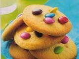 Пятнистое печенье | Ингредиенты: На 30 шт: 150 г сливочного масла, размягченного 150 г сахара 1 ч л ванильной эссенции 1 яйцо 225 г простой муки, просеянной 3 упаковки шоколадных конфет в разноцветной глазури. Инструкции:1. Положить масло и сахар в миску, взбить электрическим миксером или деревянной ложкой в бледную пышную массу. Добавить ваниль и яйцо, взбить. Добавить муку и замесить мягкое тесто. Сформировать в длинную колбаску. Положить на противень, проложенный пергаментом. 2. Раскатать колбаску на бумаге, чтобы она была аккуратнее, в диаметре 5 см. Завернуть в бумагу и положить в холодильник на 30 мин. 3. Разогреть духовку до 190 гр С. Смазать 3 противня. Развернуть тесто. Порезать на кусочки толщиной 6 мм; аккуратно положить на противни. 4. Вдавить в каждое печенье по несколько конфеток. Запекать 10-12 мин до бледно-золотистого цвета. Охладить на противнях в течение нескольких минут, затем перенести на решетку и дать полностью остыть. Может храниться в плотно закрытом контейнере до 1 недели. |