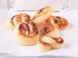 Претцелы с маком | Ингредиенты: На 60 шт: 190 гр сливочного масла 1 2/3 чашки простой муки 2 ч л лимонного сока 2/3 чашки воды (примерно) 1 яйцо, взбить 3 ч л маковых семечек 1 ч л паприки щепотка кайенского перца 2 ст л тертого сыра пармезан 1 ч л соли Инструкции: 1. Нагреть масло до комнатной температуры. Просеять муку в большую миску. Добавить сок и достаточно воды, чтобы можно было замесить липкое тесто. Месить тесто на столе,п осыпанном мукой около 5 мин; накрыть тесто и положить в холодильник на 15 мин. 2. Снова положить тесто на стол и вырезать на поверхности крест глубиной 2 см. Вытянуть углы наружу, чтобы получился как бы 4 листовы трехлистник, 36 см квадрат. 3. Сформировать из масла 12 см кубик и положить его в середину "Цветка". Накрыть лепестками, чтобы закрыть масло; раскатать в прямоугольник 20 х 40 см. Загнуть нижнюю треть теста, затем загнуть верхнюю часть теста, накрыть и положить в холодильник на 10 мин. 4. Раскатать, снова согнуть и повторить около 3 раз, поворачивая тесто на 90 гр каждый раз перед раскатыванием. Раскатать тесто в прямоугольник 20 х 40 см, сложить тесто так, чтобы крайние стороны встретились в середине и сложить пополам; накрыть и положить в холодильник на 10 мин. Повторить. 5. Раскатать тесто на доске, посыпанной мукой до толщины 4 мм, смазать яйцом, посыпать половиной семечек, затем паприкой, перцем и сыром; порезать на полоски размером 1х15 см. 6. Закрутить полоски в претцелы и смазать яйцом (не задевая срезы), посыпать солью и маком, положить на противень, смазанный маслом, на расстоянии 4 см. Запекать в горячей духовке в течение 10 мин. |