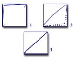 Оформление салфеток | Карманчик: Сложенную квадратом салфетку повернуть так, чтобы все открытые стороны были обращены налево (1). Верхние листики перегнуть по диагонали (2) и вложить вовнутрь (3). Эту форму можно использовать, чтобы вложить в салфетку любую открытку. |