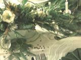 Слева представлен вариант украшения стола зелеными веточками хвои, сплетенными в венок. Пламя свечей, укрепленных на нем, будет отражаться в маленьких звездочках из фольги, рассыпанных по столу вперемешку с золотистыми бусинками. Украшая новогодний стол, не забудьте о чудесной традиции: маленькие сюрпризики всем участникам застолья, которые можно положить прямо на сервировочные тарелочки. Детям это доставит несомненное удовольствие, а во взрослую вечеринку внесет неожиданную веселую нотку, если к сюрпризику добавить записку с конкурсным заданием. Проявите изобретательность и начало нового тысячелетия наверняка запомнится всем Вашим гостям!