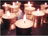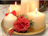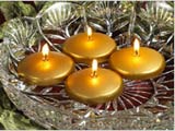 Плавающие свечи: Композиции из плавающих свечей очень удобны – они красивы, просты в исполнении и компактны. Все что требуется: сами свечи и красивая неглубокая ваза или тарелка. Иногда такую композицию могут дополнить лепестки цветов, например, роз, или цветные стеклянные камешки, которые можно расположить на дне прозрачной вазы. Технология проста – в вазу или тарелку наливаете немного воды и на ее поверхность «пускаете» несколько плавающих свечек. Кстати, воду для плавающих свечей можно окрасить в любой понравившийся цвет, как по контрасту, так и в тон цвету свечей.