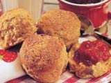 Выпечки: БулочкиБулочки с мёдом и мюсли |  Продукты: На 12 шт 300 гр блинной муки 1 ч л молотой корицы 20 гр сливочного масла 65 гр мюсли, поджаренных на сковороде без масла 60 мл молока 1 ст л сахара Инструкции: 1. Смазать маслом круглую форму для торта диаметром 23 см. Просеять муку и корицу в миску, втрреть масло и добавить мюсли. Добавить мед и достаточно молока, чтобы получилось липкое тесто. 2. Переложить тесто на стол, посыпанный мукой, и замесить. Раскатать до толщины 2 см и вырезать кружки формочкой диаметром 5.5 см. Положить кружки в подготовленную форму, смазать молоком и посыпать сахаром. Запекать при 240 гр С в течение 15 мин. |